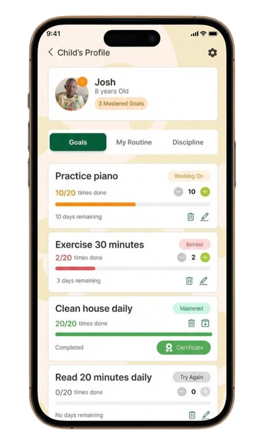 Monitor completion of daily responsibilities with visual progress indicators and achievement badges.